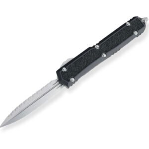 ztechknives D/E Signature Stonewashed Double Edge Full Serrated Traction Inlay Black OTF Automatic 206-12S