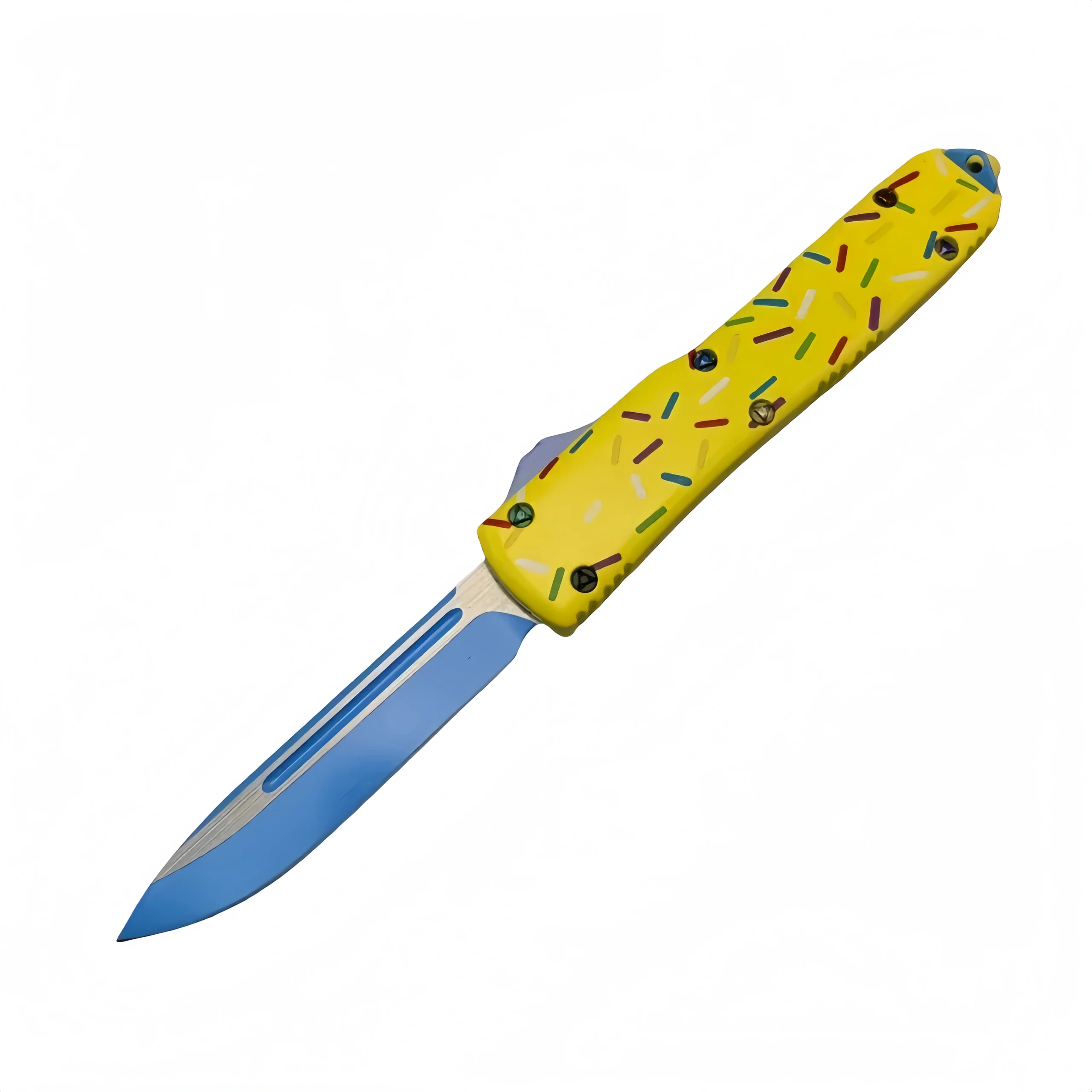 Das 5,5″ UTX70 Yellow Series Dessert Warrior OTF-Messer vereint verspieltes Design mit hoher Leistung. Mit seinem markanten gelb eloxierten Griff und dem „Dessert Warrior“-Motiv vereint dieses Messer Spaß, Funktionalität und Präzision in einem kompakten Paket. Der Double-Action-OTF-Mechanismus ermöglicht ein schnelles und einfaches Ausfahren der Klinge, während der ergonomische Griff für Komfort im Alltag sorgt. Ob Sammler oder jemand, der Wert auf ein einzigartiges und zuverlässiges Werkzeug legt – dieses Messer ist die perfekte Ergänzung für jedes EDC-Setup oder jede Präsentation.